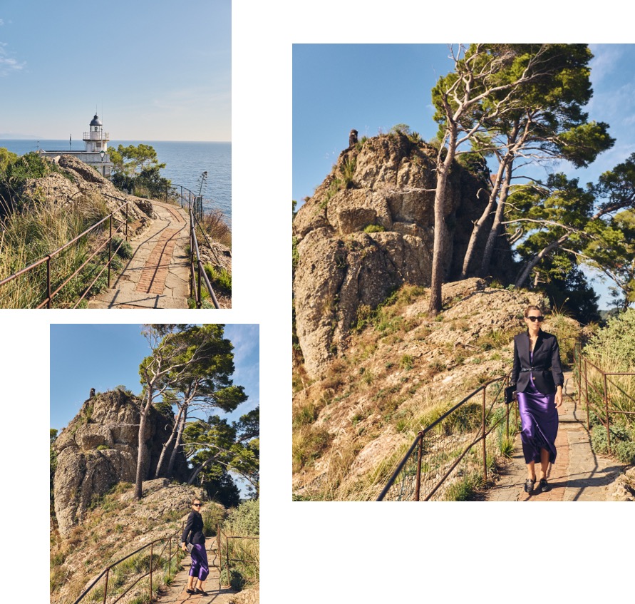 14h, direction le Phare ! Nous grimpons le joli sentier et nous nous arrêtons à l’église. La vue sur le village et la côte y est précieuse. Nous poursuivons le chemin, la nature a repris le pouvoir nous laissant entrevoir les criques de rêve entre les branches. La balade dure un bon quart d’heure et quel bonheur de fuir les touristes. Là nous sommes seuls, avec le cui cui des oiseaux, les vagues qui frappent les rochers. Au bout du chemin, quelques marches en pierres vers le phare puis c’est la mer à perte de vue. Divine et régénérante.