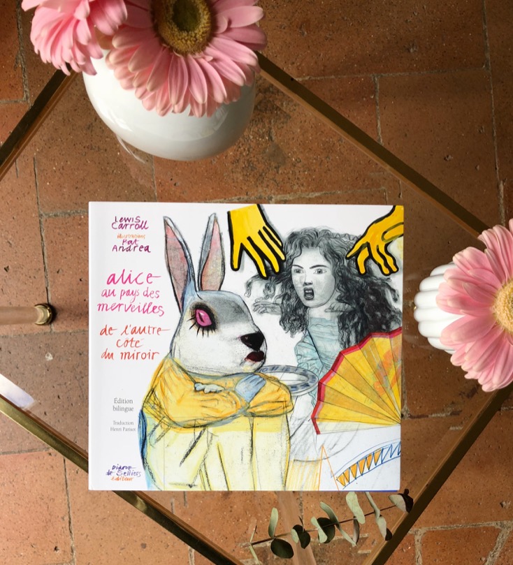 Chez « Alice au pays des merveilles », il y a une double lecture très singulière. D’un côté, le rêve, les personnages enchantés, le côté foufou … de l’autre des questions plus adultes, des visions presque cauchemardesques. Si vous pensiez qu’Alice est un peu noeud-noeud, les personnages créés par Pat Andrea auront vite fait de vous faire changer d’avis. Délire de couleurs, de formes, les images accompagnent à merveille un texte à tendance surréaliste.