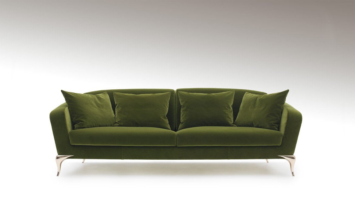 J’ai passé l’hiver à m’habiller en vert des pieds à la tête et je fantasme sur la matière velours pour habiller mon intérieur et le rendre encore plus cocooning. Autant vous dire que je raffole de ce sofa prénommé Cara et dessiné par Paul Mathieu pour Fendi Casa.