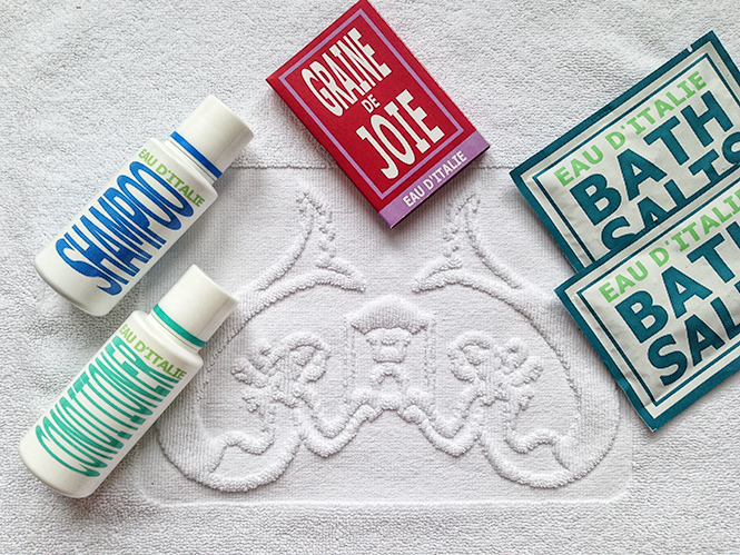 En lisant le recap de la journaliste Lili Barbery-Coulon sur son voyage à Naples et sur la côte amalfitaine, je suis tombée sur cette photo des produits Eau d’Italie à l’hôtel mythique Le Sirenuse.