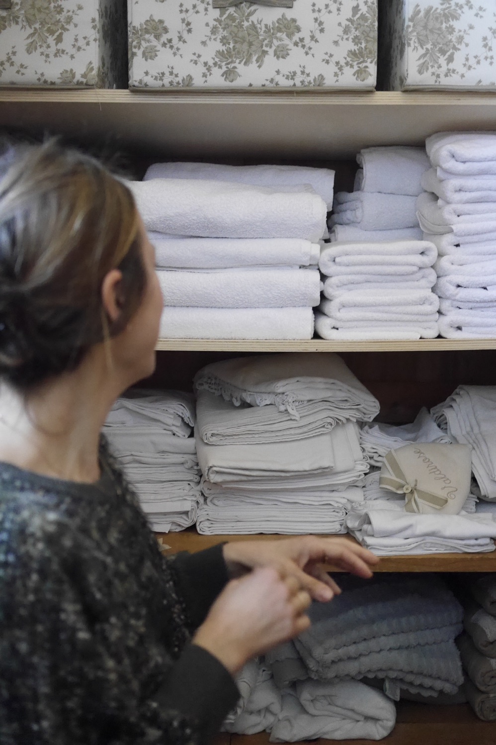 Car on vient maintenant au Val di Rose pour une atmosphère unique et surtout une vie quotidienne inspirante. Irene n’en fait pas exprès, elle a en elle cet art de rendre chaque moment intéressant, elle sait esthétiser tous les instants, même les moins valorisés du quotidien à commencer par la vaisselle et le nettoyage ! Du savon de Marseille posé négligemment à côté d’un torchon à l’ancienne, au set de tasses à café chinées et dépareillées, en passant par l’armoire à linge à la patine parfaite … TOUT fait terriblement envie.