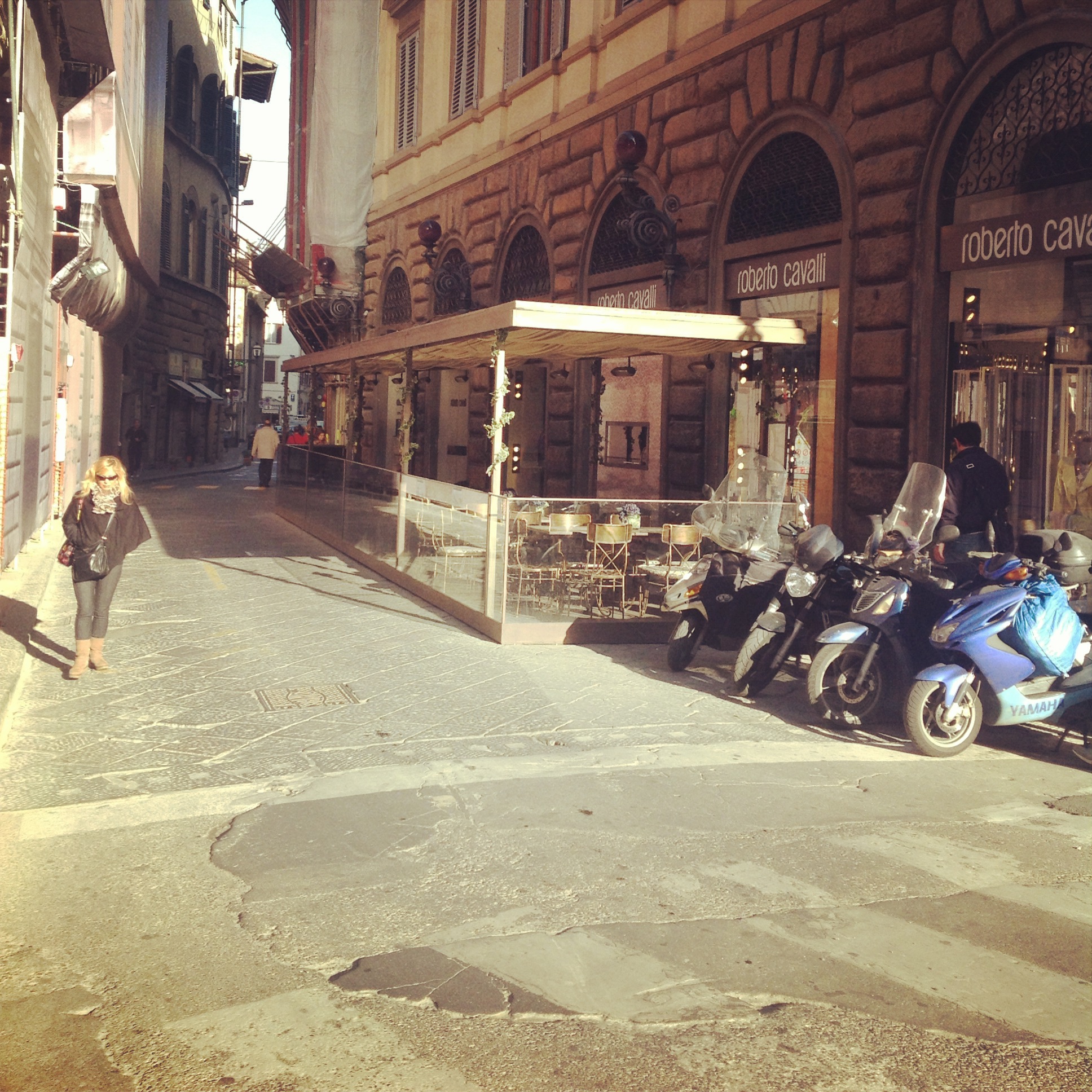 Le café Giacosa est l’un des cafés historiques de Florence. Quand le couturier Florentin Roberto Cavalli le rachète pour sa situation idéale à l’angle de la via Tornabuoni, la maison de couture a l’intelligence de conserver une partie du café accessible par la via della Spada.