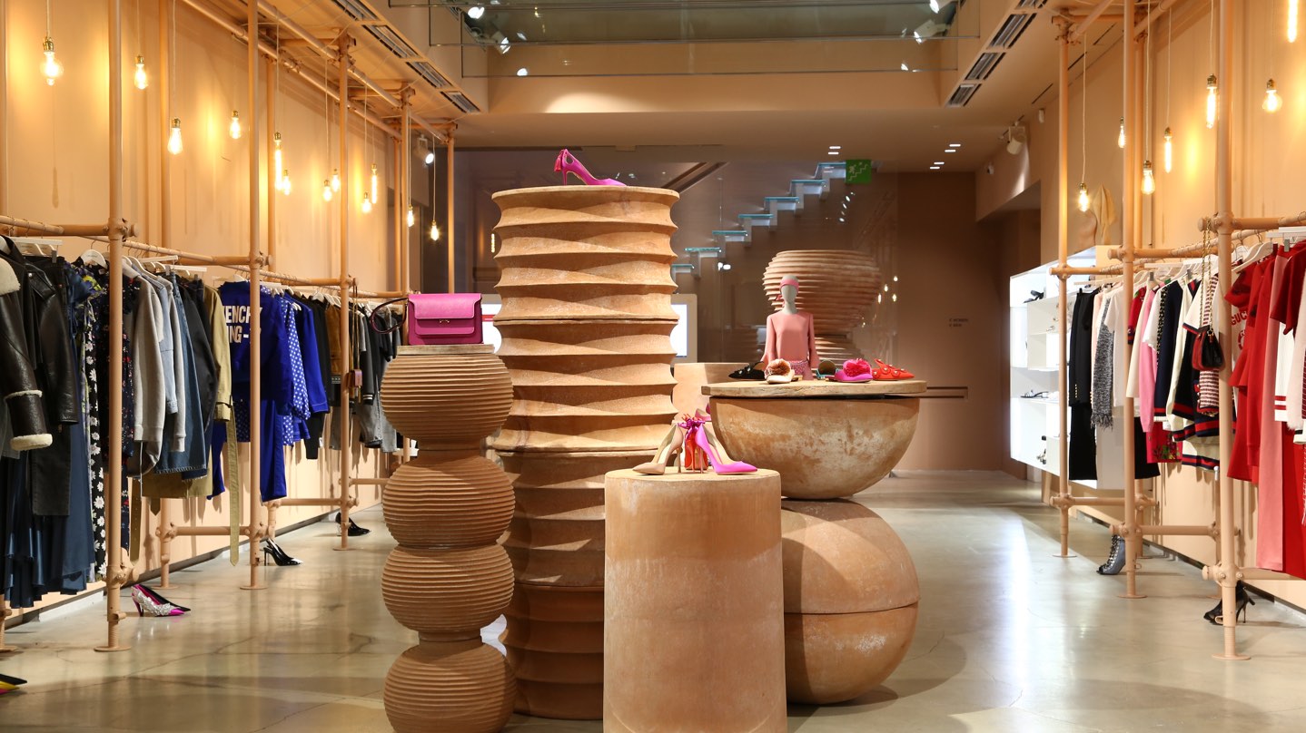 Alors que j’étais en avance pour déjeuner chez Floret, le nouveau bar de Luisa Via Roma, j’ai utilisé les cinq minutes que j’avais devant moi pour visiter la boutique. J’étais en transe d’admirer les terres cuites géantes utilisées pour mettre en avant les accessoires. Cet aspect géométrique fonctionnait admirablement pour mettre en valeur les produits sur un fond neutre… finalement pas si neutre que ça.