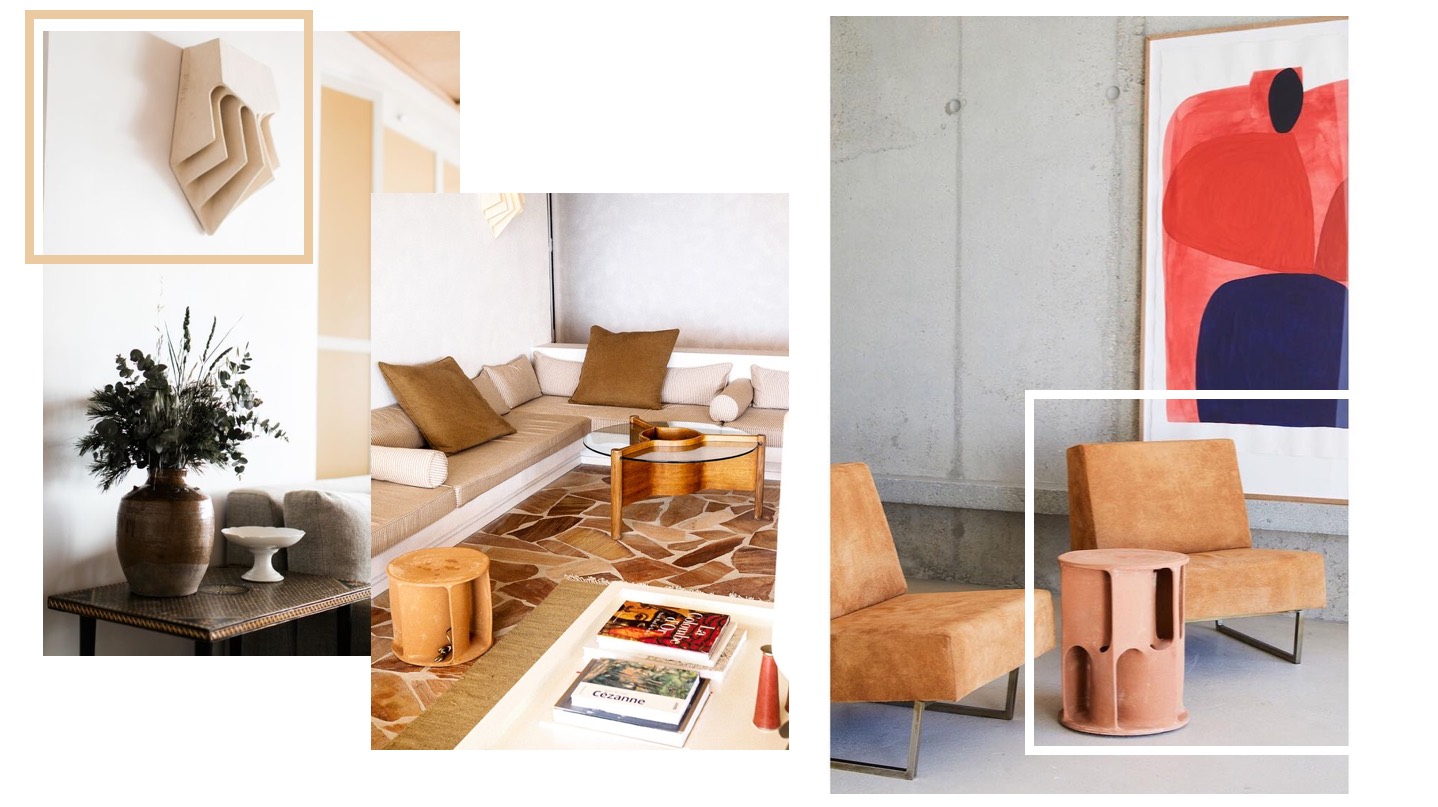 Plus qu’une matière, un objet, la terre cuite est une couleur qui a le vent en poupe ! La plateforme communautaire spécialisée dans la déco d’occasion SELENCY lui a dédié récemment une newsletter intitulée « 50 nuances de Terracotta ». Marie Claire Maison a également présenté sa sélection d’où je tire les photos ci-dessous.