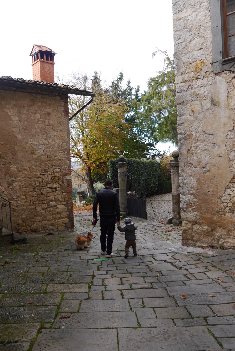 Même si début décembre, les arbres ont perdu leurs feuilles et les vignes n’ont plus leur spectaculaire manteau orangé, les paysages du Chianti n’en restent pas moins magnifiques. Il ne subsiste que l’essence même du territoire, ses vallons, ses volumes, ses cyprès. Nous avions décidé d’aller visiter le Castello di Ama, une propriété vinicole au coeur du Chianti et proche de Sienne. Empruntant la superstrada Florence-Sienne, nous sommes sortis à Tavernelle et avons continué par la route secondaire.