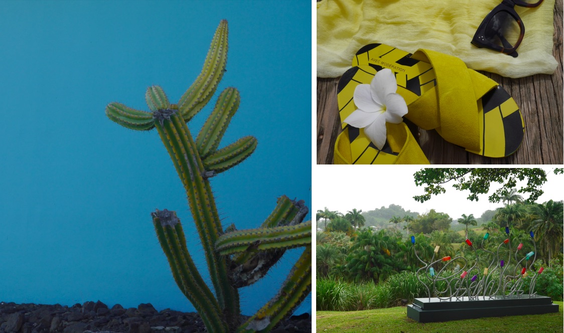 J’ai particulièrement aimé le fait que mes chaussures matchaient à la perfection l’environnement et la nature martiniquaise. Côté couleurs, ma rétine a fait la rasiat de pantones, et a même imprimé des associations particulières de nuances, comme ces bleu-gris / vert d’eau absolument sublimes. Bref, les chaussures adaptées à la situation!
