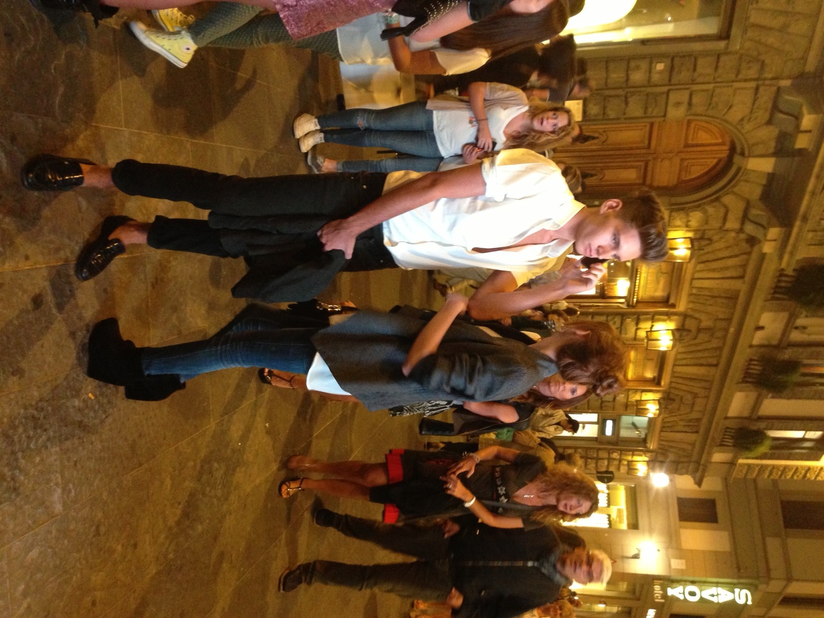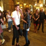 Sur le papier, l’idée de rentrer chez Gucci comme chez naf-naf me plait d’emblée, et dans la réalité, j’ai été surprise par l’ambiance bon enfant que la fête fait planer sur la ville. Alors oui bien sûr, il y a le rassemblement de modeux qui boient du champagne assis entre des boîtes à chaussures, des bandes de filles clonées qui déclinent et coordonnent leurs tenues comme des amazones modernes, mais pas seulement. J’ai vu des mamies sur leur 31, des couples avec enfants faire du shopping virtuel chez luisaviaroma (shopping virtuel=rentrer dans une boutique au dessus de son budget, essayer, se trouver jolie et choisir, puis ne pas acheter car 900 euros pour un pantalon en soie ça fait décidément un peu cher) et des gens dont le style ne semble pas être la priorité et qui se sont beaucoup amusés. En fait ce qui est le plus appréciable, c’est que personne ne se prend trop au sérieux et le mood est résolument détendu.