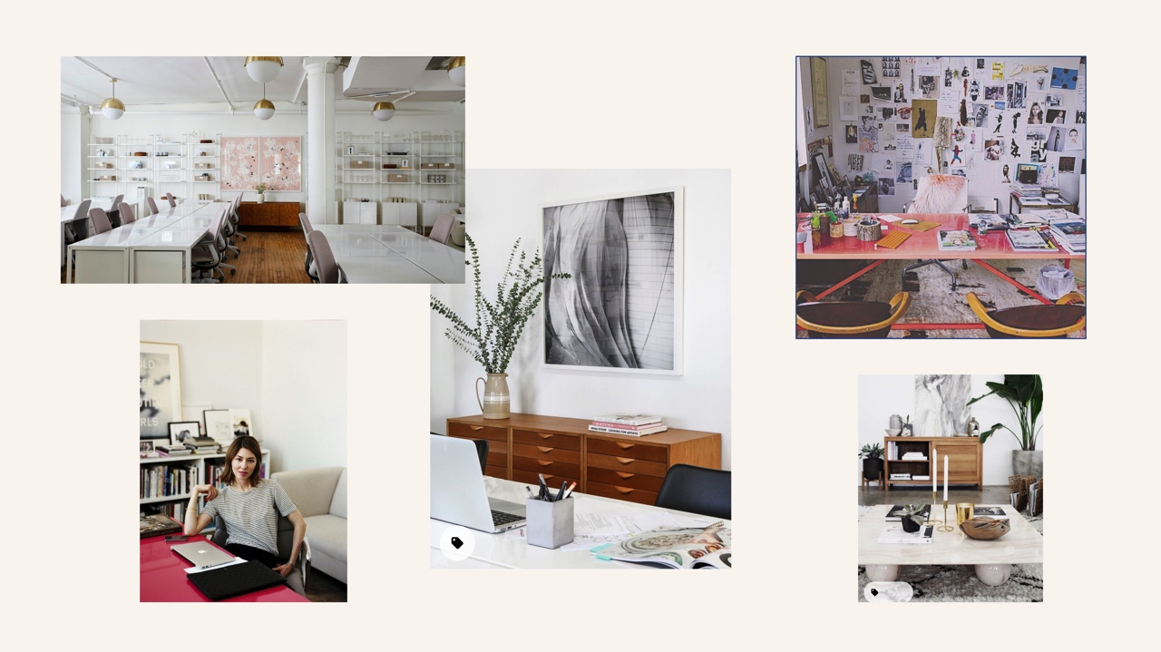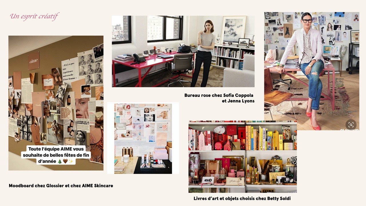 Je l’ai vu avec mon bureau à moi dans ma dépendance, avoir un espace dédié stimule considérablement ma créativité. Je suis allée repêcher des images chez des figures créatives fortes. Sofia Coppola avec son bureau rose, qui emboite le pas à Jenna Lyons qui possède le même modèle mais enfonce le clou avec ses images préférées, son tapis, ses chaises … Pour finir, j’ai bien sûr en tête le studio créatif de Betty Soldi qui travaille au milieu des livres d’art et des objets soigneusement sélectionnés.