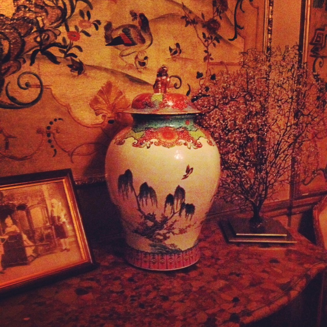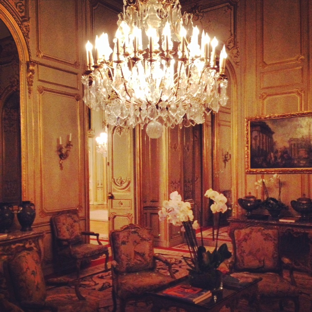 Grâce à Tessa, j’ai pu profiter d’un guide particulier pour ma visite : la femme de l’ambassadeur, Giada Santasilia Magliano, qui m’a fait découvrir toutes les pièces de l’hôtel particulier habituellement fermées au public. Imposant escalier en marbre (structure jumelle de celui de l’hôtel de Matignon situé à quelques numéros), étoffes précieuses, salle chinoise, boiseries, toile de Gian Antonio Guardi, bureau d’inspiration piémontaise avec des paysages de Cignaroli, réception… l’Ambassade, anciennement hôtel de la Rochefoucauld-Doudeauville, est un lieu à couper le souffle. Elle a été intégralement redecorée en 1937 et sera de plus en plus souvent ouverte au public lors d’événement culturelle. En effet, le couple « ambassadeurs » travaille étroitement avec le Louvre et l’état italien pour resserrer leurs liens via la culture, en faisant de l’ambassade un cadre parfait pour accueillir des expositions temporaires.