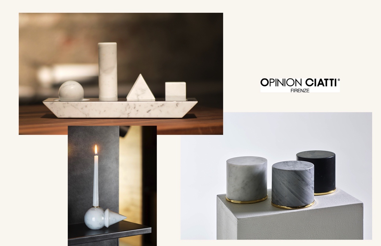 Fondée en tant que société de meubles TV dans les années 1950, Opinion Ciatti a lancé une collection très populaire et raffinée de meubles et de vaisselle en 1984, puis une ligne d’accessoires pour la maison en collaboration avec Bruno Rainaldi en 2003. En commençant à explorer ses liens culturels et artisanaux avec Florence et la Toscane en 2014, la marque propose la collection Once Upon A Time qui enrichit la sélection d’objets, la ligne de produits de petite taille reconnaissables, fortement identifiables et jamais banals. Pour cette ligne, ils emploient des designers contemporains: Maurizio Galante & Tal Lancman ont créé pour eux le bougeoir Pinocchio et le porte-objet en forme de pomme Blanche-Neige, et Studio Lievito a conçu le set de cuisine Elemantare, repensant la forme des ustensiles de base de manière extrêmement minimaliste.