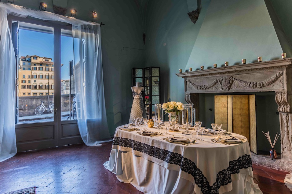 Après le palazzo Gondi, c’est le palazzo Capponi qui était cette fois-ci l’écrin de l’événement. Prendre ses quartiers dans ce petit bijou est une façon d’insister sur la capacité de Florence à être la capitale de l’art et du bon goût. Le palazzo fait face au ponte Santa Trinità conçu sur les plans de Michelangelo, rien que ça. L’événement profitait de la lumière si particulière du lungarno (les berges de Florence).