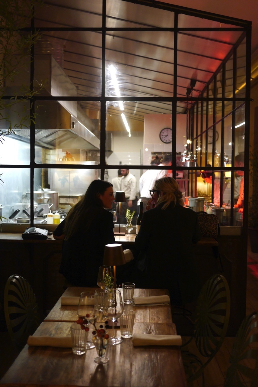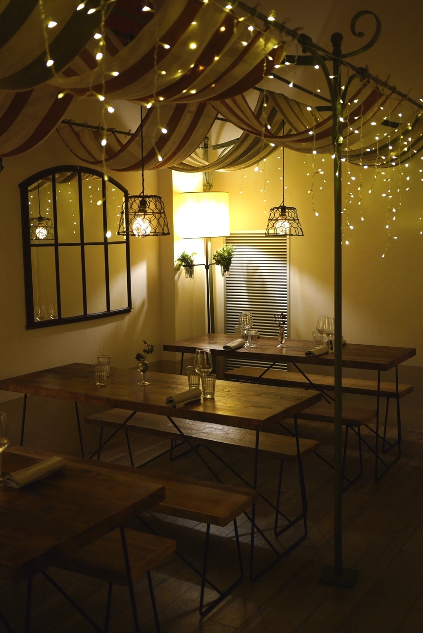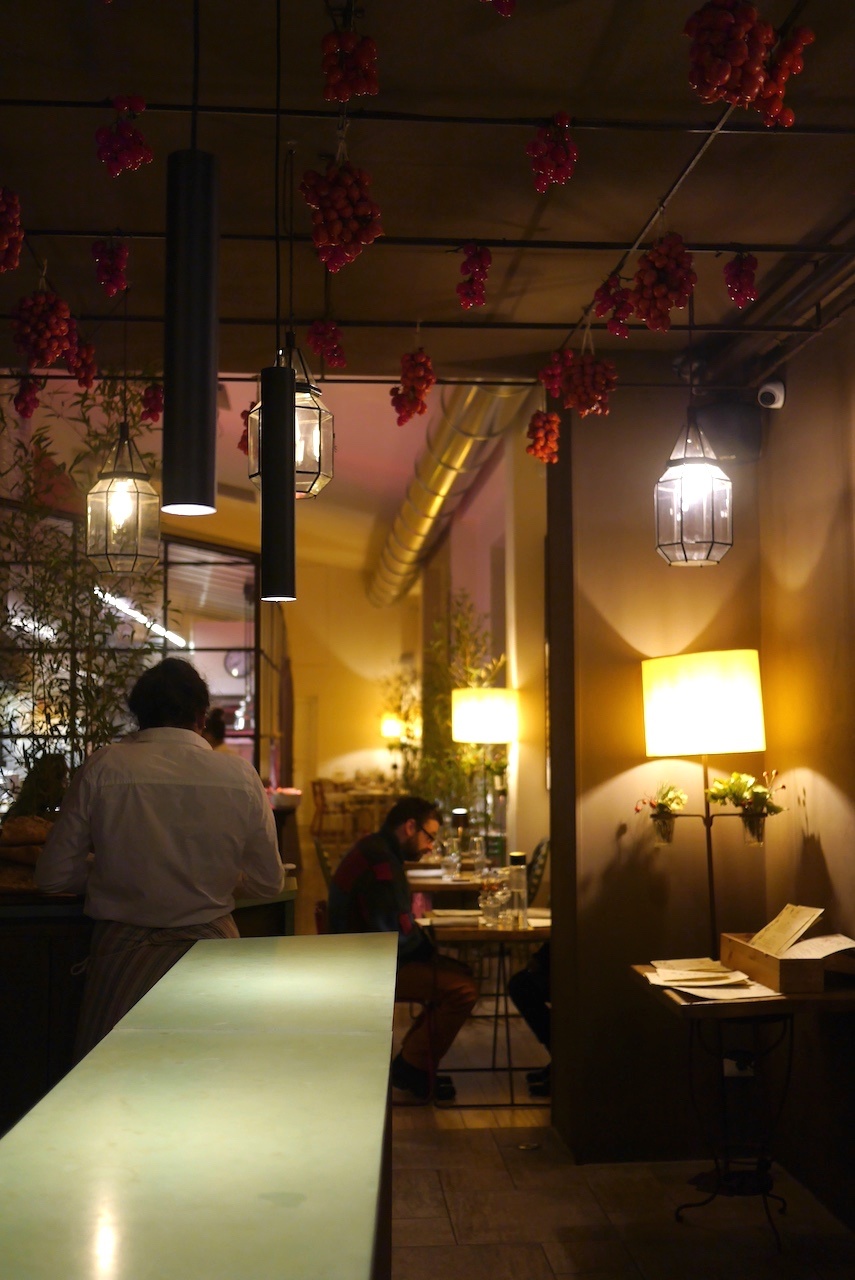 Tout, dans la salle de restaurant, rappelle un jardin: du plafond de tomates qui nous accueille à l’entrée aux plantes imposantes dans la salle de restaurant en passant par la serre dans laquelle les cuisiniers oeuvrent. Enfin, en point d’orgue, la guinguette au fond du restaurant, avec les loupiotes et les bancs de brasseur !