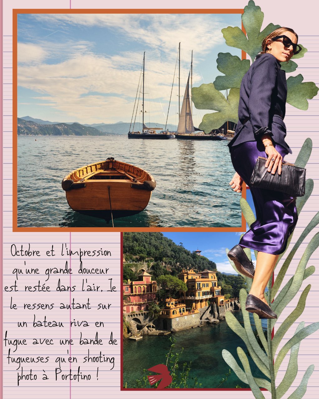 En octobre, il se passe toujours quelque chose de magique entre une météo très clémente, les vacances enfin terminées et l’impression qu’une grande douceur est restée dans l’air. Je le ressens autant sur un bateau riva en fugue avec une bande de fugueuses qu’en shooting photo à Portofino.