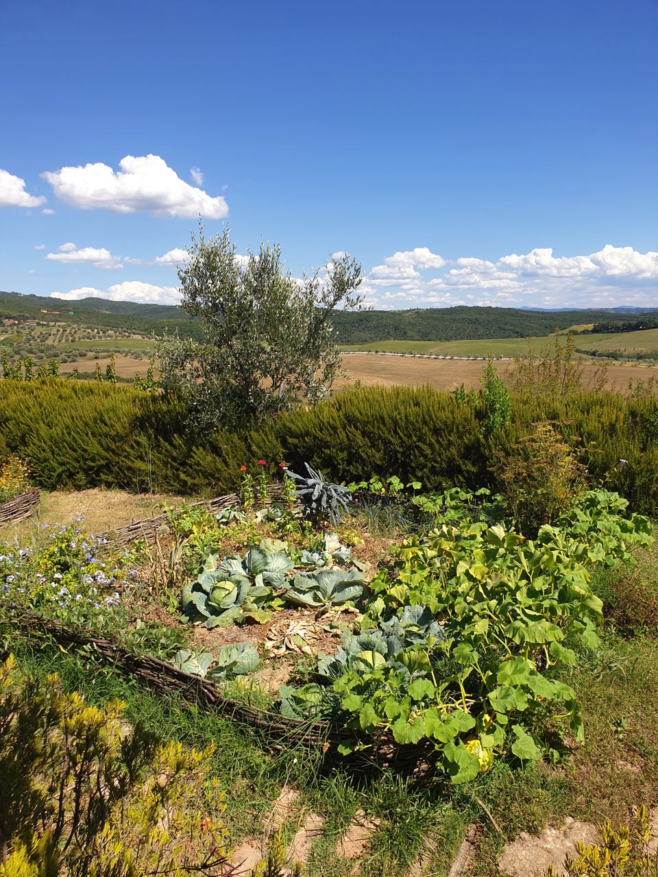 Je me suis beaucoup investie dans cet endroit et au bout de 12 années, j’ai tellement insisté auprès de la famille de mon mari qu’ils nous ont vendu une ancienne ferme abandonnée dans le même domaine. C’était en 2007 et ma première envie a été de faire un immense potager, ce que j’ai fait. Mais l’idée de transformer cet endroit en structure d’accueil a rapidement commencé à germer et en 2014, je décidais de me lancer dans l’aventure. Deux ans et demi -et beaucoup de travaux- plus tard, j’ouvrais l’agriturismo Le Tassinaie au public.
