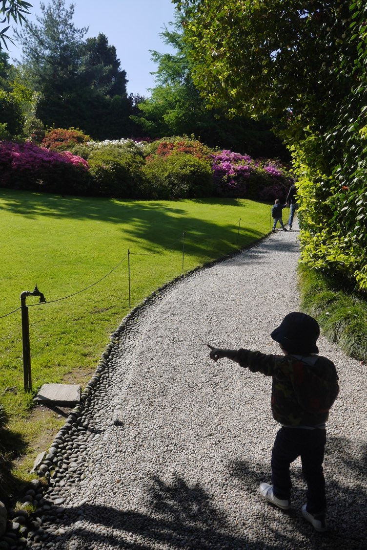 Sur la descente, nous nous arrêtons au Jardin Botanique d’Alpinia qui offre une vue incroyable sur le lac et les îles. Leone est ravi de courir entre les allées et nous profitons d’un moment à quatre vraiment serein perchés sur notre montagne.