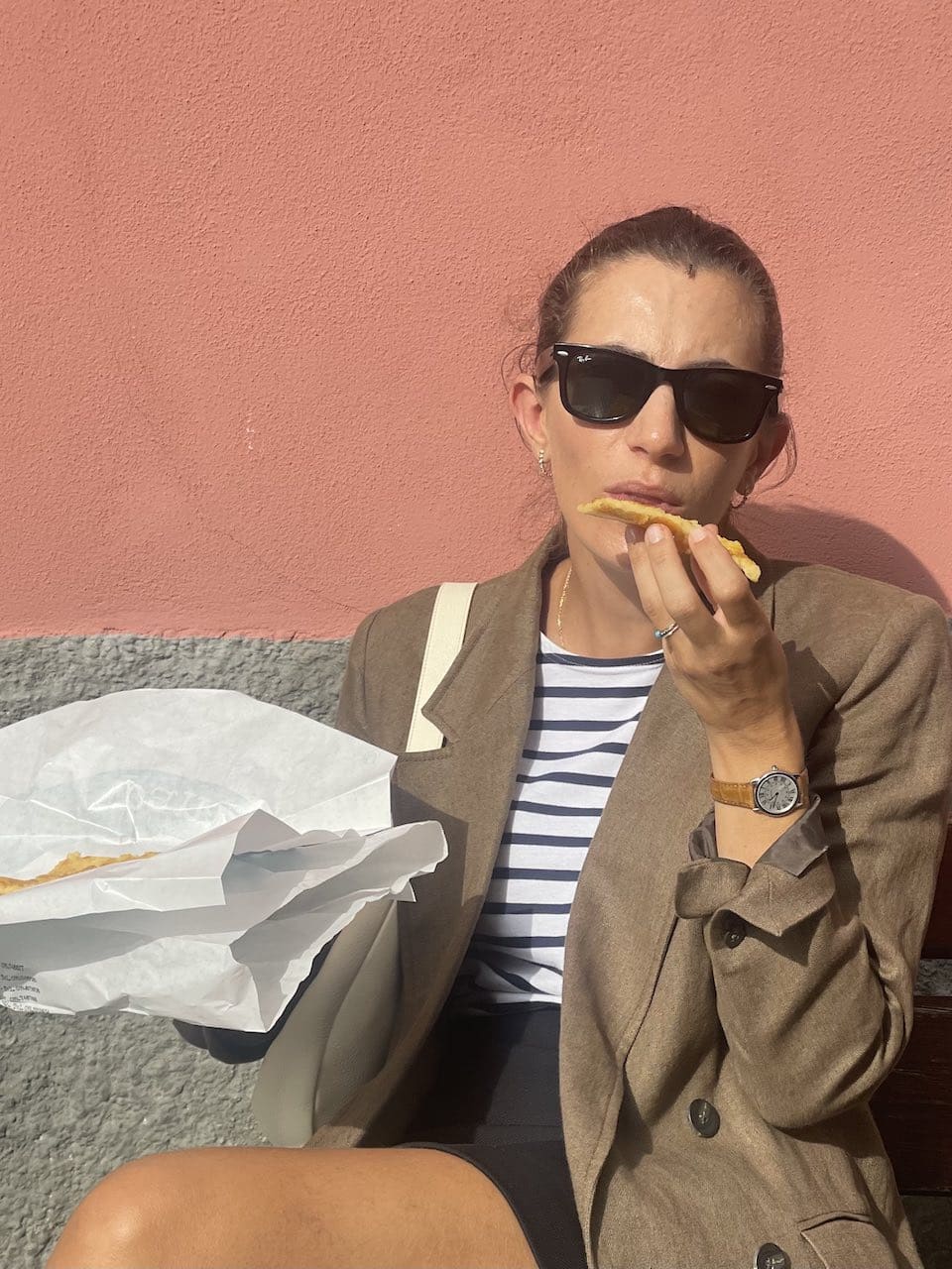 A Noli, nous avons vécu un véritable condensé de moments italiens. On entre par la porte principale du bourg, avec une fresque magnifique, et on se retrouve soudain à discuter avec un monsieur sous les jolies arcades. Deux rues plus loin, en commandant un café – à 8h30 du matin-, nous nous retrouvons à parler des meilleures trattorias typiques de la zone. Selon l’adorable serveuse, ils se trouvent non pas sur la côte mais sur les hauteurs. On vous glisse ses 2 restaurants préférés dans les collines ci-dessous. Trois portes à côté, nous sommes attirées par la vitrine d’un forno, une boulangerie, Rotondo Pani e Grani. On entre, je prends un morceau de focaccia tomate et anchois tandis qu’Alice jette son dévolu sur la cecina, équivalent de la socca niçoise. On s’assied sur un banc devant le forno pour déguster ce petit-déjeuner des champions et là, c’est le grand balai des pensionnés qui se saluent. Si vous cherchez un endroit typique où prendre le pouls d’une vie italienne dans toute sa simplicité, c’est ici ! À noter, Noli n’est pas bien loin d’un village de pêcheur, Varigotti, à voir !