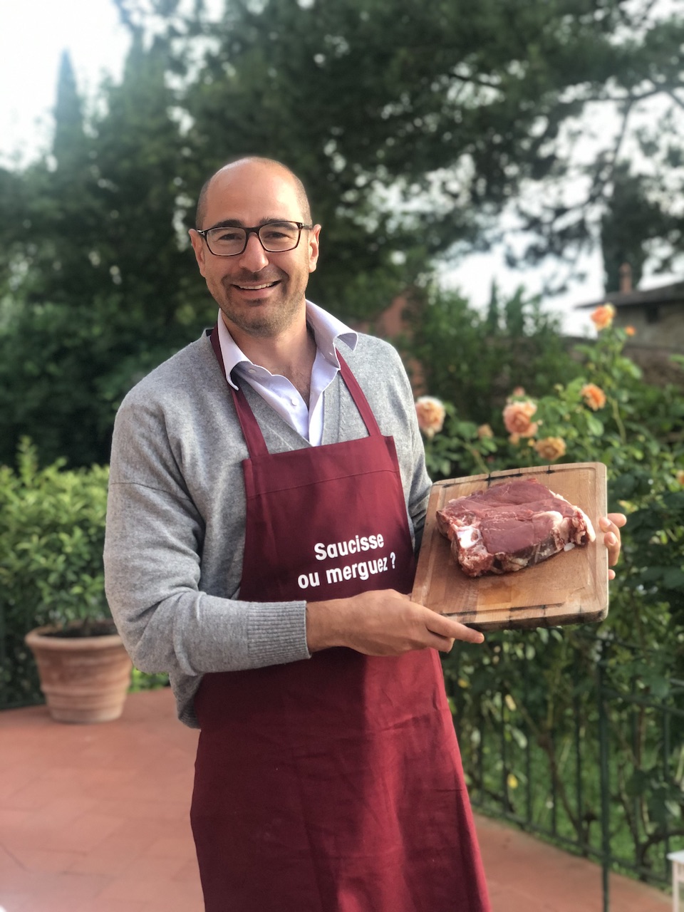 Quand j’ai demandé à Andrea si je pouvais l’interviewer sur la bistecca alla fiorentina, j’ai vu une lueur s’allumer au fond de ses yeux. Tendre époux adore la bonne chaire et lors de notre entretien, il a directement sorti son livre de chevet “Universo Barbecue” de Marco Agostini. 300 pages sur la viande, histoire de me faire comprendre où je venais de mettre les pieds. Traditions, secrets de préparation, bonnes adresses, Andrea m’a TOUT DIT sur la bistecca. C’est parti!