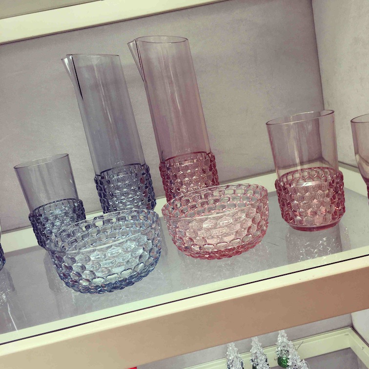 - de la vaisselle Kartell pour la terrasse ou le jardin. Je suis in love avec cette carafe rose (50 euros) trouvée chez Armando Poggi, un magasin historique du centre de Florence (pil en face du Duomo, facile). J’aime également beaucoup leurs petites tables d’appoint Saletti en pyramide de cartes (65 euros), parfait pour une chambre d’enfant également.