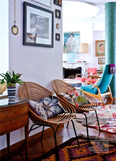 Ma curiosité pour le design m’a permis d’ouvrir les portes d’appartements de personnalités dont la création est le métier. J’y ai découvert deux intérieurs qui m’ont particulièrement touché, ceux des stylistes des maisons Missoni et Fendi qui résument bien la tendance bohème chic italienne.