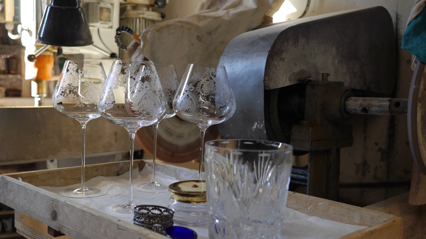 Mais quelle différence y-a t’il entre le laboratoire Locchi et les marques que l’on connait comme Baccarat ou les produits en cristal de Bohème ? Il y a tout d’abord les formes qui varient : le Vase Médicis par exemple, et tous les objets tirés des tableaux de la Renaissance que le laboratoire aime recréer. Il y a des motifs d’incision du verre absolument sublimes mais surtout des artisans capables comme personne de réparer et reproduire des modèles historiques précieux.