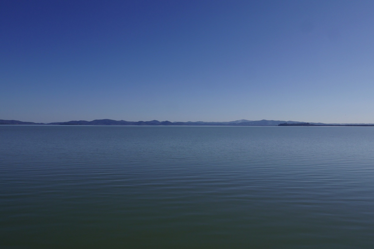 Le lac Trasimène, c’est mon lac, celui de mes souvenirs de vacances, celui où je me sens à la maison. J’aime ses couleurs changeantes, la sérénité qui s’en dégage, la nature qui a gardé le dessus et ses charmants petits villages au bord de l’eau ou accrochés aux multiples collines qui dessinent l’horizon. J’ai profité d’un magnifique week-end de février (16°, soleil et ciel bleu non stop) pour programmer quelque chose que je n’avais encore jamais fait là-bas: le tour complet des rives du lac à vélo.