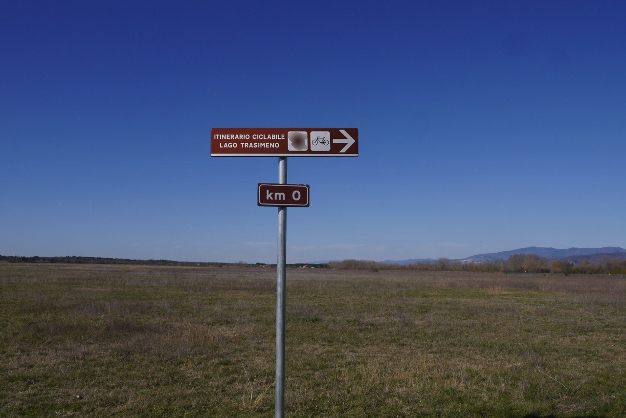 La boucle fait 56km et le terrain est relativement plat. Etant ce qu’on appelle une sportive du dimanche, j’accueille cette information avec joie et prévois le parcours sur 2 jours. Après avoir étudié la carte, je décide de partir de Castiglione del Lago, où il y a un chouette loueur de vélo et de faire étape à Passignano où je sais qu’il y a de l’animation même en hiver. La première étape fait 21km, ce qui tombe bien vu que j’arrive sur le coup de 13h un samedi. Il reste 35km pour la journée du dimanche, où j’ai le loisir d’étirer la journée jusqu’à 17h30 si je le veux (heure où se couche le soleil mi-février).