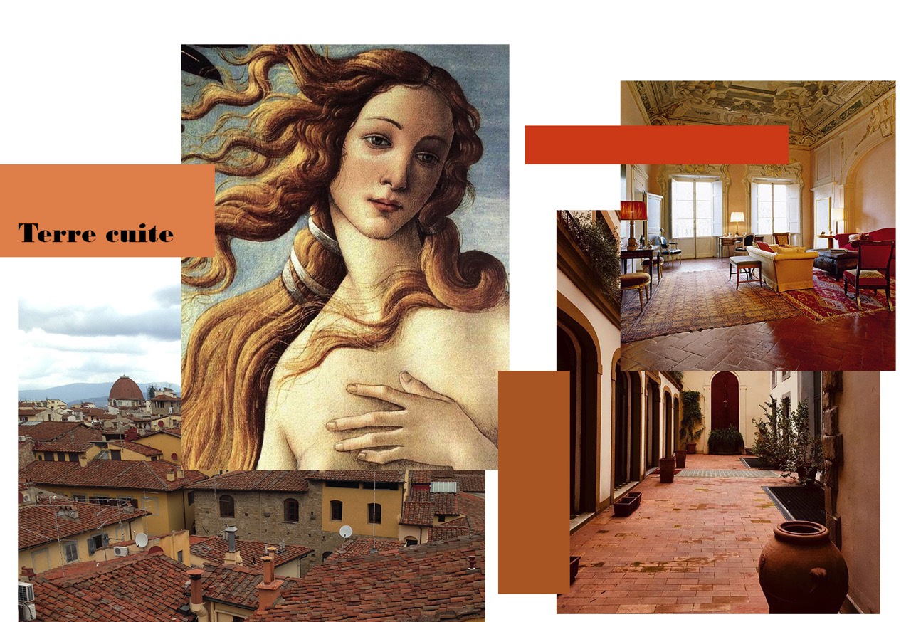 La Pietra Serena est le matériel traditionnellement le plus utilisé dans les rues et l’architecture extérieure de Florence. Elle est produite au Moyen Âge au nord de Florence, et représente donc non seulement le choix esthétique, mais aussi la production et la réalité de la région. En fait, même les portraits de Botticelli font l’éloge de cette couleur de la palette florentine. Pour utiliser cette palette de couleurs dans un intérieur, essayez-la comme alternative au blanc total pour une esthétique minimaliste dans la conception de murs intérieurs.