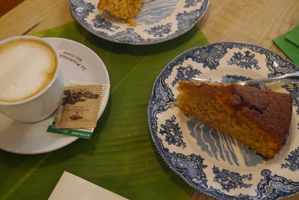 - Une part de gâteau à la carotte. Je fais un peu une obsession sur le Carrot Cake en ce moment, celui là était orange comme il faut et le gout vraiment top. Il y avait également un gâteau à la banane, un au chocolat et une crostata aux fruits qui promettaient de caler comme il se doit … à tester la prochaine fois!