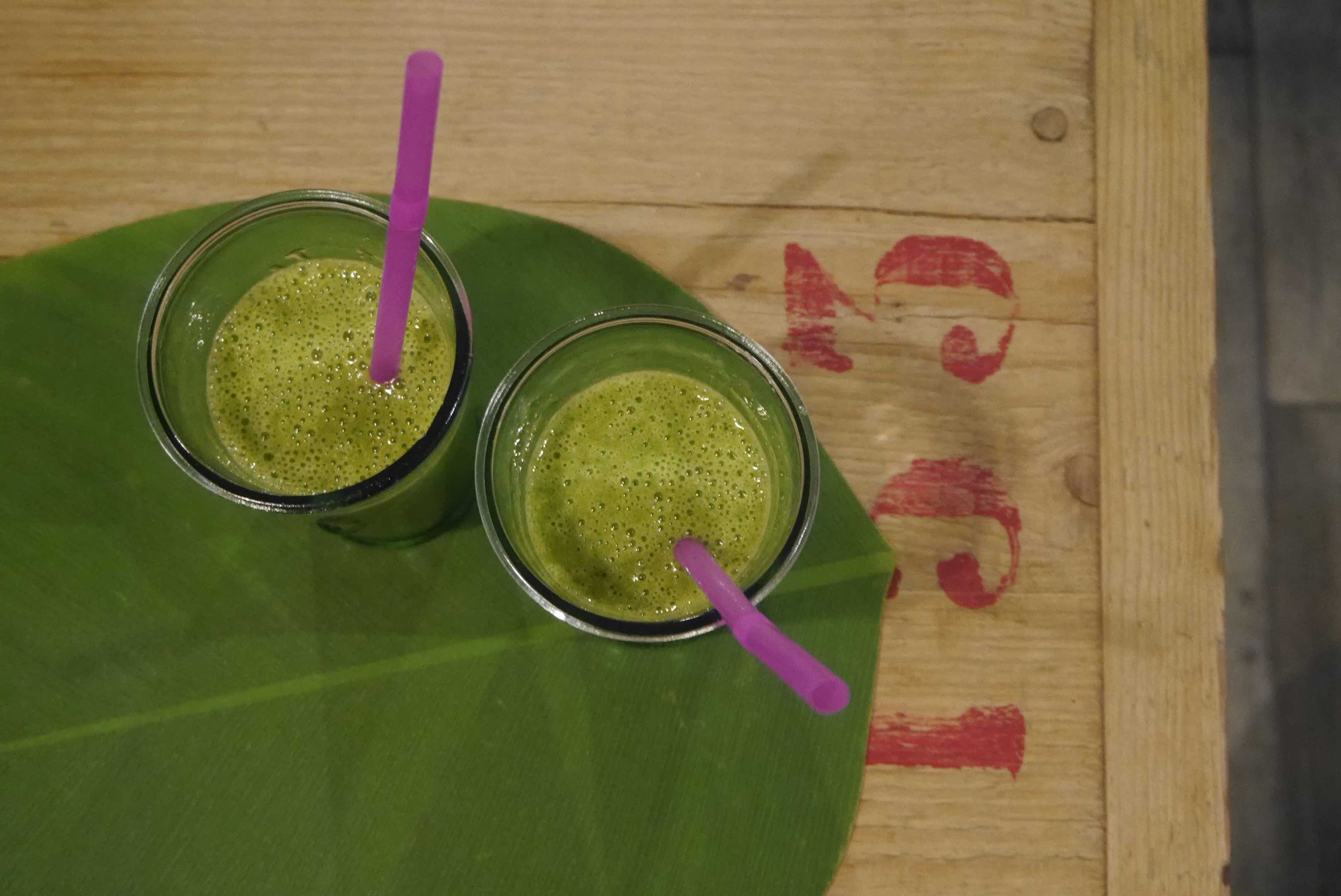 - Un super smoothie vert avec des épinard => on l’a partagé avec Shari car il se suffit à lui-même pour le petit-déjeuner. Après le sport c’est l’idéal pour faire le plein de vitamines et nutriments et tenir jusqu’au déjeuner.