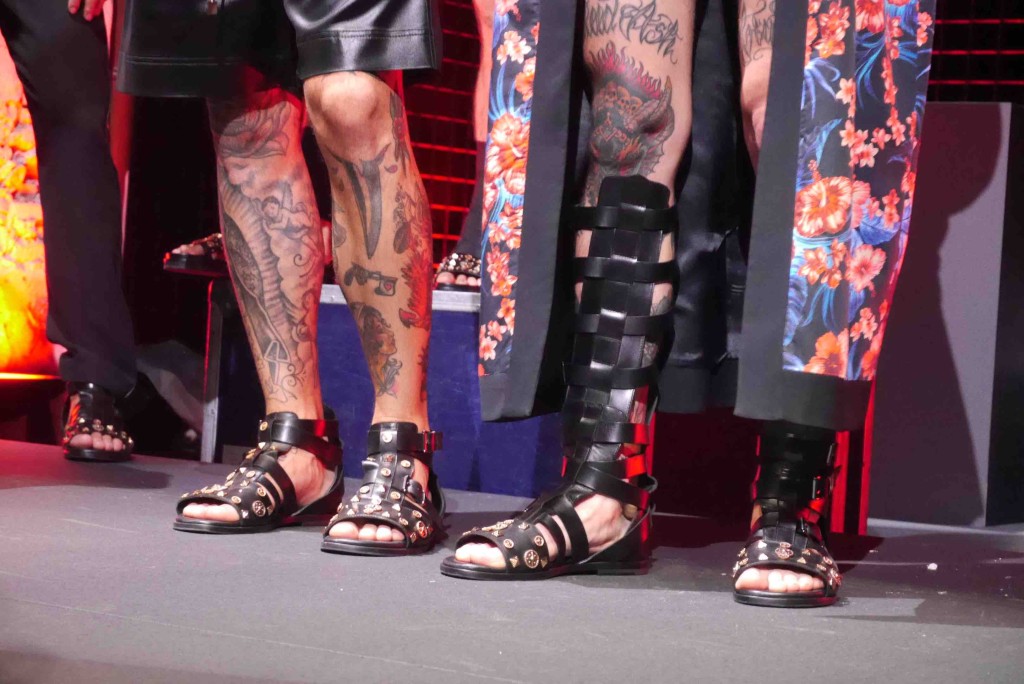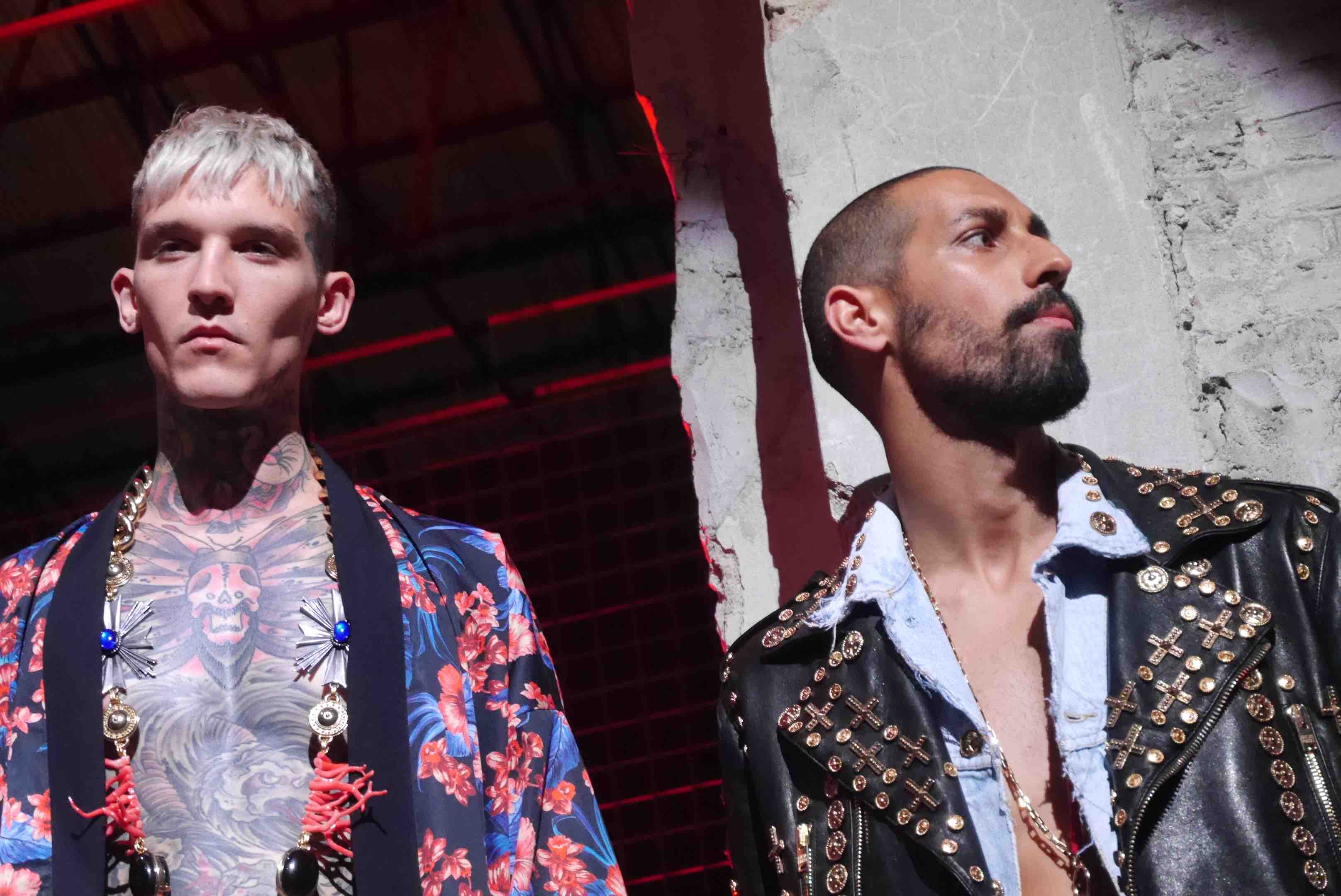 Amulettes, patchs soleil cousus sur les vêtements, spartiates montantes jusqu’au genoux. Des hommes hyper virils et suraccessoirisés, c’est possible.