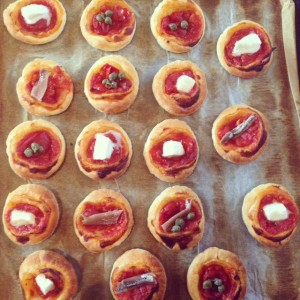 - Quand le four est chaud, mettez-y les pizzette et faites cuire pendant 8-10 minutes (bien surveiller car ça brûle vite).