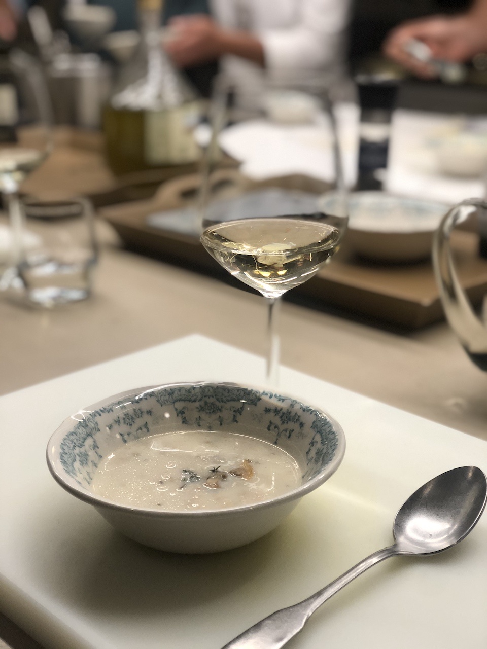 Un “clam chowder”, soupe de palourdes qu’Alice et Andrea ont appris à faire à l’école de cuisine qu’ils préfèrent à Florence “Desinare at Riccardo Barthel” (tous les cours ICI)