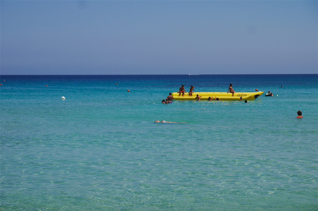 Nous avions ensuite repris la voiture pour aller se dorer la pilule un peu plus loin à San Lorenzo. Nous avons déjeuner au beach club Agua, très familial et avons profité de la plage jusqu’à 16h30. Comment décrire la mer… merveilleusement transparente, sans la moindre impureté et dans des dégradés clairs incroyables, proche du blanc ! La parfaite journée de glande qu’il nous fallait (grosse compétition avec la qualité des plages de Sardaigne, pour ceux qui s’y connaissent).