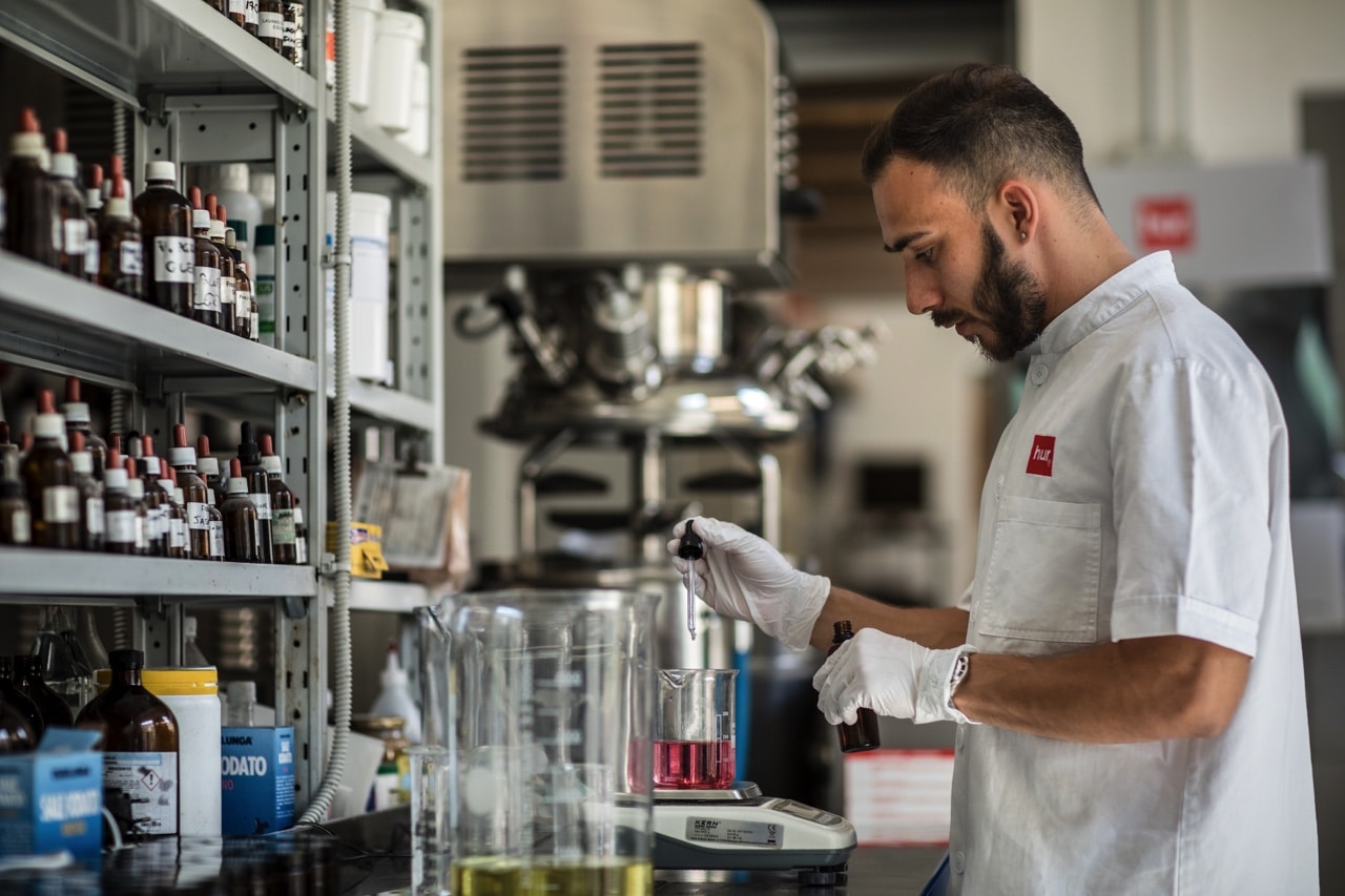 D’un point de vue classique, je dirais qu’un cosmétologue est une personne qui a une connaissance encyclopédique des matières premières, dotée d’une grande mémoire (comme 1 avocat qui doit retenir tous les textes de loi) et une représentation graphique de la chimie. C’est aussi quelqu’un de passionné, avec une grande curiosité, pour pouvoir approfondir les différents aspects des matières premières. D’un point de vue plus personnel, j’ajouterai qu’il y a un autre aspect fondamental, la créativité. C’est ce qui, pour moi, fait la différence. Pour explorer encore plus, proposer des produits différents, s’adapter aux besoins des clients mais aussi anticiper ce que veut le marché.