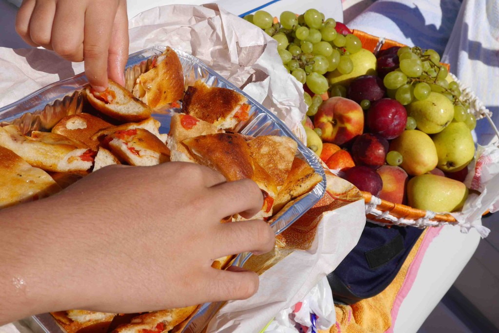 Mon moment préféré? Le spuntino (casse croute) de 11H30 avec foccacia maison, fruits frais et vin blanc Vermentino. Bien mérité après avoir fait joujou dans l’eau toute la matinée!