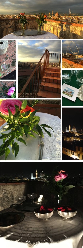 Arrivé en haut, le joli couple découvre la terrasse illuminée de bougies et remplie de fleurs. Le spumante, les fraises et la panna montata faite maison n’attendent qu’eux. Difficile de faire plus romantique quand on voit la vue sur le Duomo, l’église de Santa Croce, San Lorenzo et le tombeau des Medicis, Orsan Michele, les maisons illuminées sur les collines… un enchantement pour terminer ce week-end florentin en beauté.