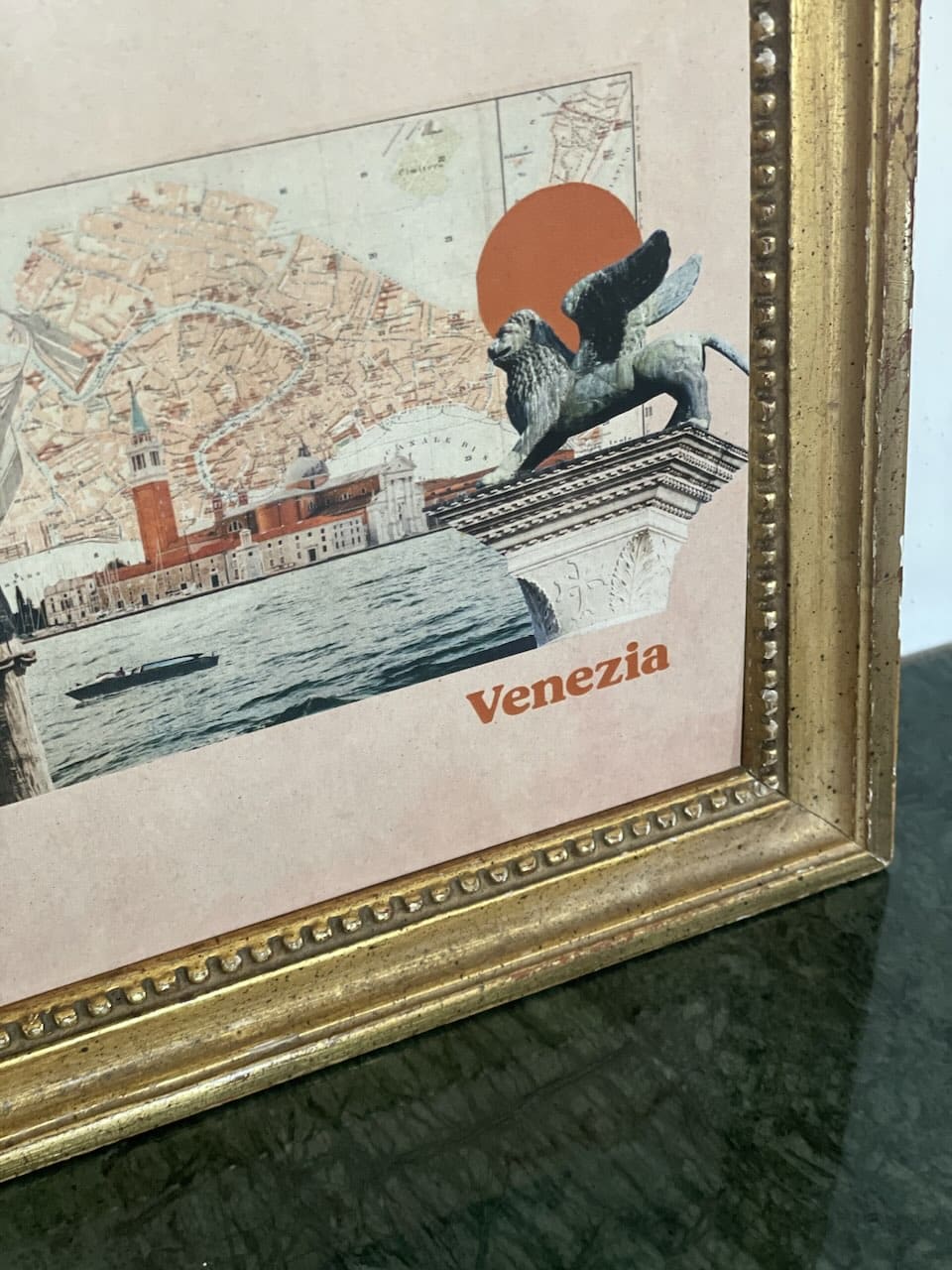 Ouverte il y a peu, la galerie dédiée aux arts graphiques propose une sélection canon d’oeuvres en éditions limitées, numérotées et signées. Tout cela restant très abordable. En me baladant dans la galerie, j’avais eu un petit choc en tombant sur des cartes créées par les fondatrices représentant Venise en collage.