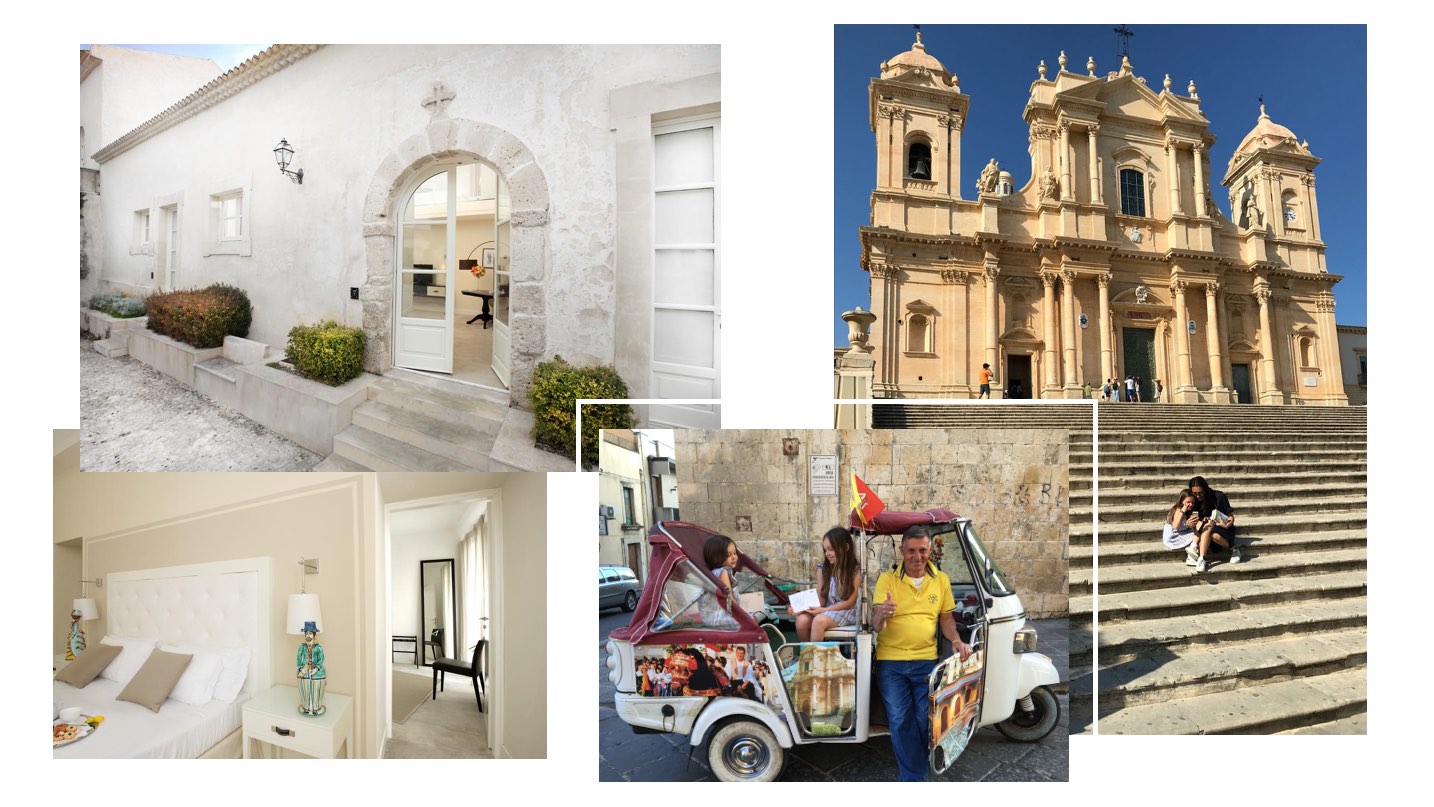 Sur notre chemin pour nous rendre à Syracuse, on s’arrête à Noto, le plus surprenant et célèbre des villages baroques Siciliens. Noto est vraiment unique au monde par sa concentration de monuments sur 2 ou 3 rues (Chiara Ferragni s’y marie !). À faire absolument : un drôle de tour avec Corradino et sa petite voiture ouverte pour découvrir les secrets de la ville. Les filles ont adoré ! Et bien sûr la chiesa San Francesco, le Palazzo Nicolaci…. Pour le dîner : restaurant gourmet il Crocifisso.