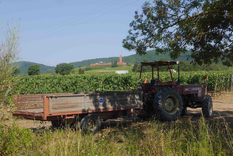 Admirez le paysage depuis la cantina tout en haut du domaine (4 km de voiture pour grimper au sommet). On peut voir toutes les îles de la Toscane, et jusqu’à la Corse. Ce paysage mythique a d’ailleurs été gravé sur les étiquettes conçues par la talentueuse Simonetta Doni, spécialiste de l’image des vins.