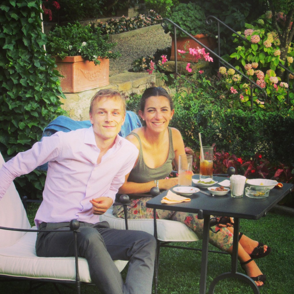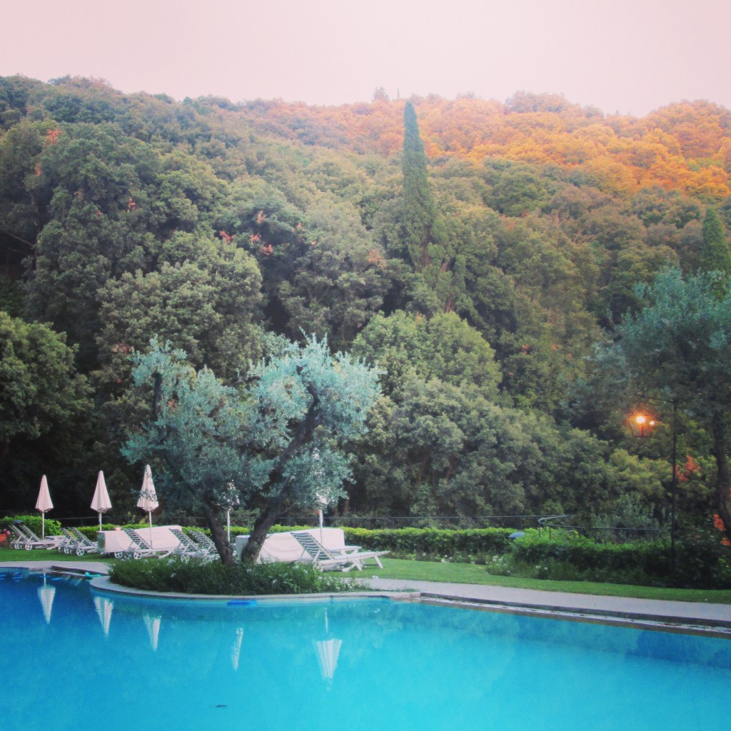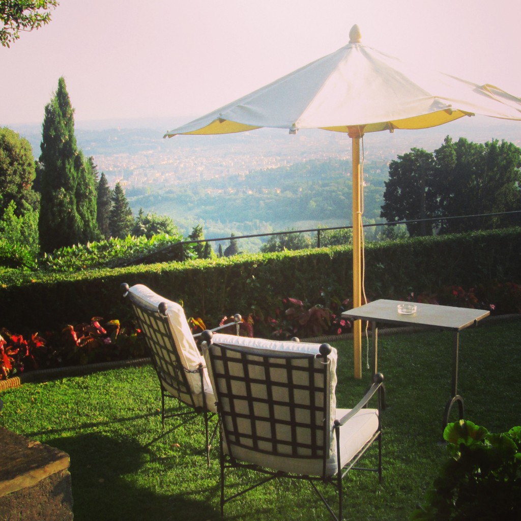 Le temps d’une soirée, échappez-vous du centre historique de Florence pour un apéro grand luxe sur la colline de Fiesole à la Villa San Michele. Attention, si vous n’avez pris qu’une seule paire de stilettos pour vos vacances, c’est le moment de les sortir. Le trajet pour vous rendre à la villa vaut déjà le détour … avenue serpentée qui suit le relief de la colline, nature généreuse avec cyprès géants, villas à l’italienne, lumière chaude: on baigne dans le merveilleux cliché de l’Italie des Medicis et vous regrettez déjà ne pas avoir accepté la promo sur la décapotable chez Hertz. En arrivant à la villa, l’imposante entrée vous mettra directement dans l’ambiance. Tenue impeccable et menton bien haut, traversez le bâtiment pour rejoindre la terrasse et son piano puis le jardin. La première vision de ce dernier, si parfait avec sa structure en escalier, donne presque le vertige. Tant de beauté ! Avec mon petit camarade Edouard, nous avions pour l’apéro la table au fond du jardin avec une vue à couper le souffle sur le Duomo.
