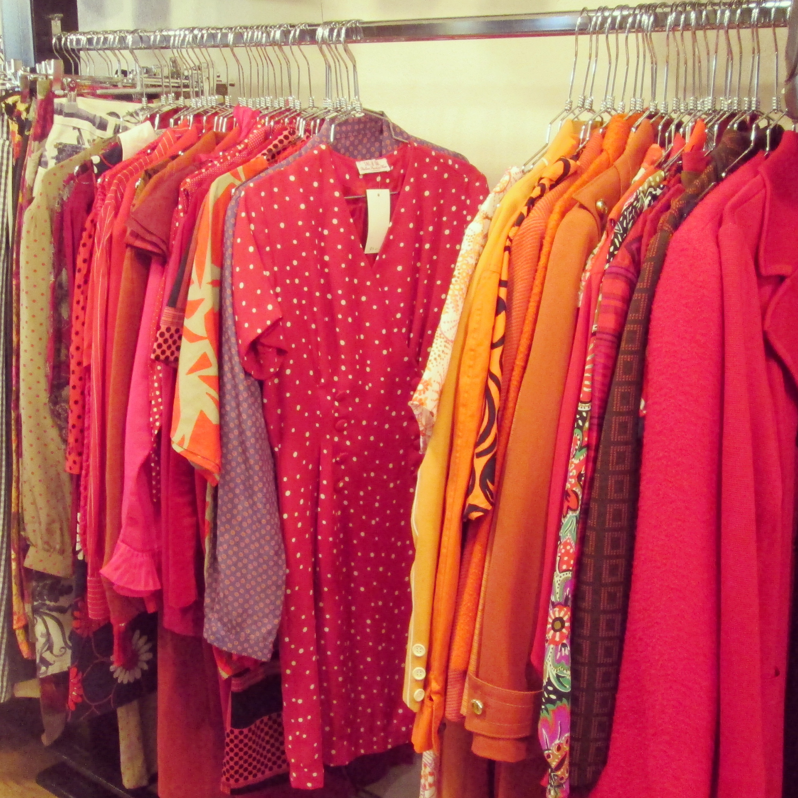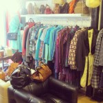 Regardez bien les foulards derrière la porte, il y a parfois un trésor hermès qui s’y cache. Au fond, une petite pièce pour les hommes avec des vestes Barbour et nœuds papillon Saint Laurent.