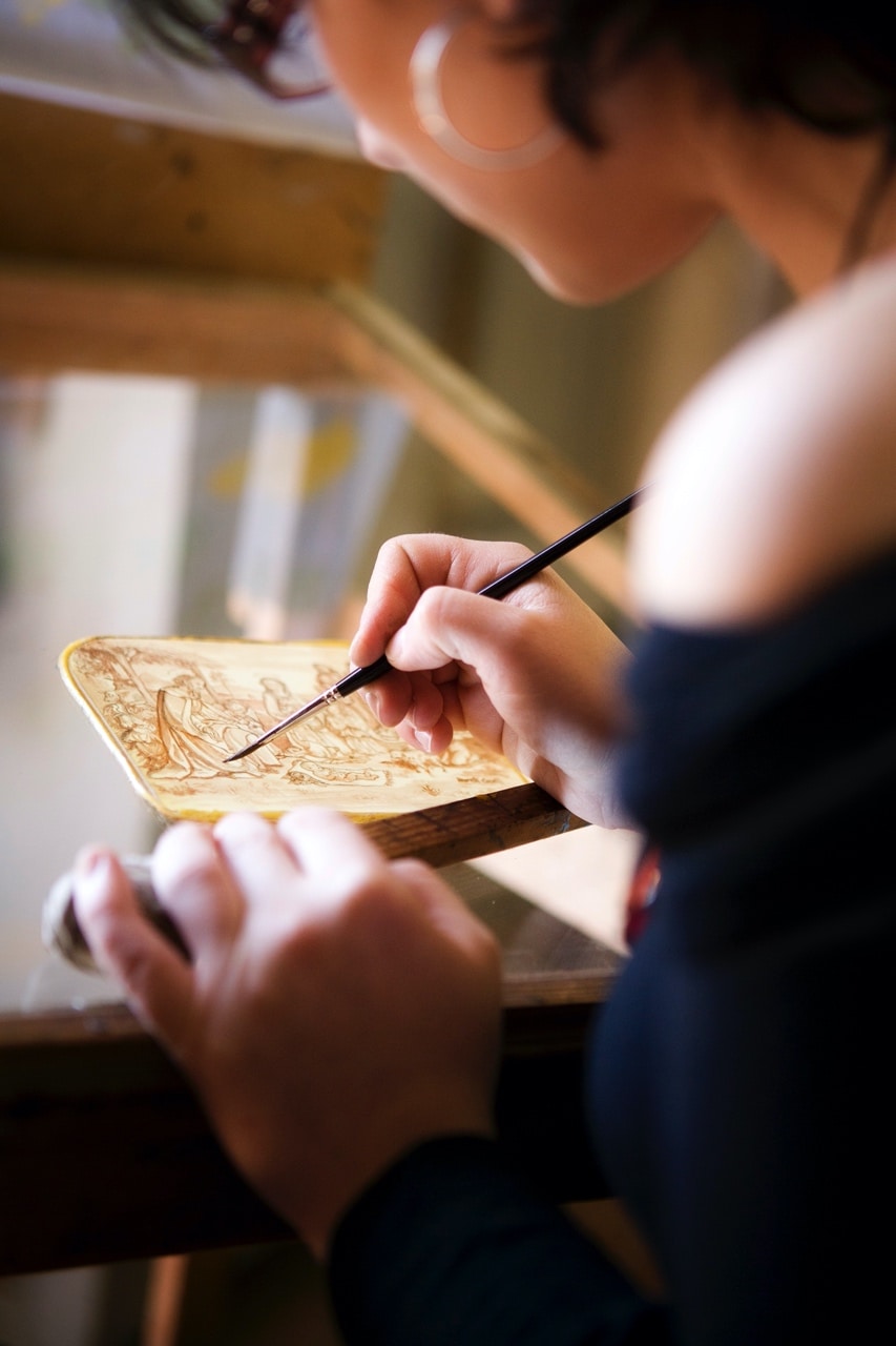 De cette période à aujourd’hui, le studio a vu 3 générations de femmes successives maintenir cette grande tradition artisanale du vitrail. C’est Anna Matilde, leur petite nièce qui prend ensuite le relais avant de passer le flambeau à Maddalena, qui m’a donc ouvert la porte ce matin de juillet 2023. Maddalena a tout appris de sa mère Anna Matilde et perpétue avec succès la tradition familiale : on peut ainsi admirer à Perugia, parmi ses créations, un vitrail sur la contre-façade de l’église Santo Spirito ou les vitraux du château Lemmo Scotti à Santa Petronilla dans les alentours de la ville.