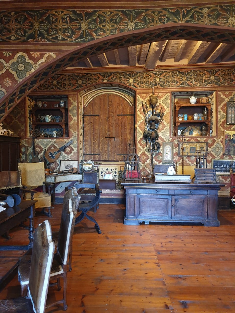 J’ai l’impression d’entrer dans un univers parallèle, impossible d’imaginer ce que cachait la façade de ce palais discret du 15e siècle. Les salles ont conservé la structure du 15e siècle dans son intégralité, de même que les fresques de l’époque. À l’intérieur, on peut admirer photos, ébauches et dessins (même grand format) des vitraux fabriqués, à côté d’objets d’art qui témoignent de l’amour des propriétaires pour l’antique et de leurs multiples intérêts culturels, musique et photographie entre autres. Une sorte de cabinet de curiosités dans son jus, lieu d’inspiration et de création de 5 générations de maîtres verriers.
