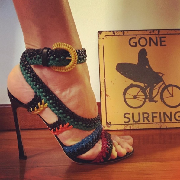 Mon regard d’aigle royal a croisé la route de cette paire de sandales Sergio Rossi (sur l’instagram et le pied de Viviana Volpicella). Que dire… j’aime l’effet tressé, les couleurs pop, la hauteur du talon, la cheville bien tenue. Donnez moi un rayon de soleil et je parade illico via tornabuoni.