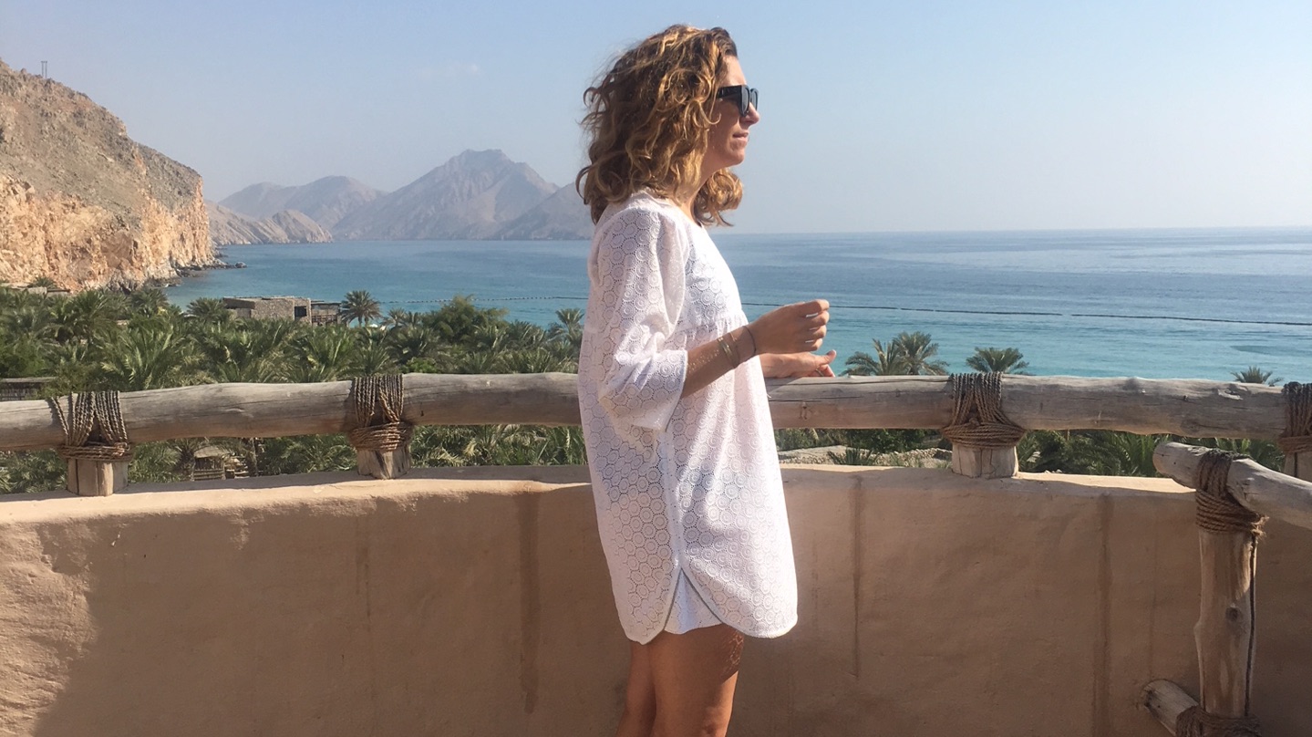 Je reviens d’un voyage extraordinaire ! Pour notre voyage de noce, nous sommes partis avec une petite année de retard car j’étais enceinte de Bianca lors du mariage. Nous avons bouclé nos valises direction le Sultanat d’Oman, une destination surprenante suggérée par notre agence, « Mon Plus Beau Voyage ». Quand Emmanuelle m’a proposé L’Oman, j’ai commencé par regarder une carte. Oui, je suis une buse totale en géographie ! Après la carte, sont venues les photos sur google … montagne aride, mer turquoise, palmes vertes contrastant avec le beige de la pierre … J’ai adoré tout de suite l’ambiance assez désertique et la nature qui repose les yeux et l’esprit.